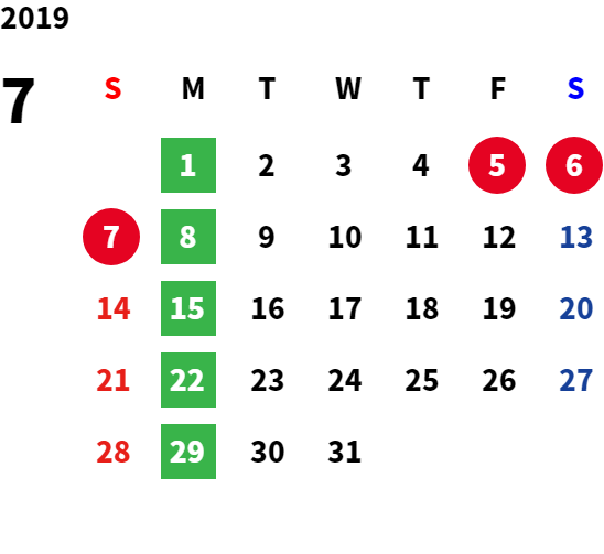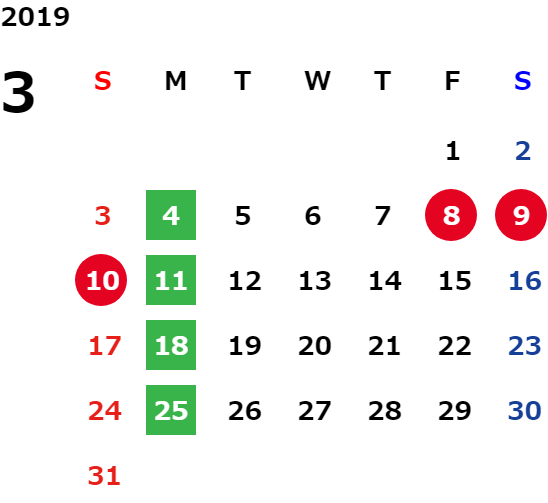 営業日カレンダー
