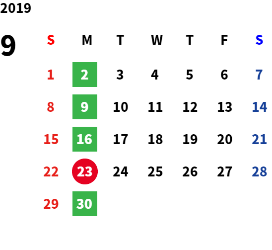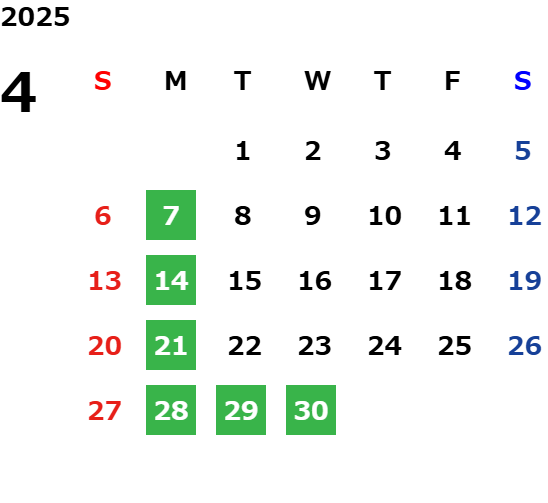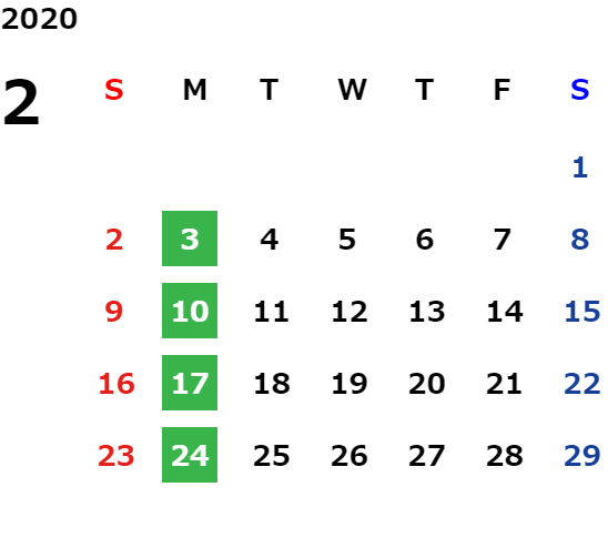 営業日カレンダー