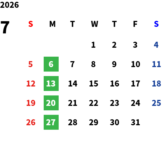 月曜日/第1,3 火曜日