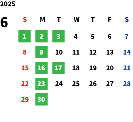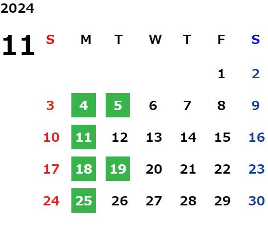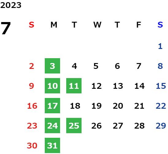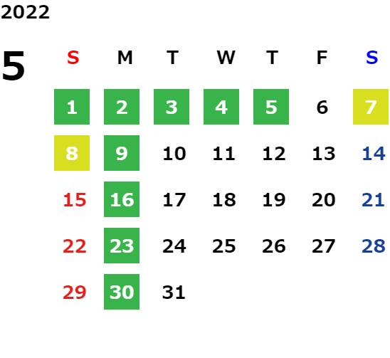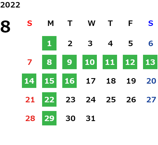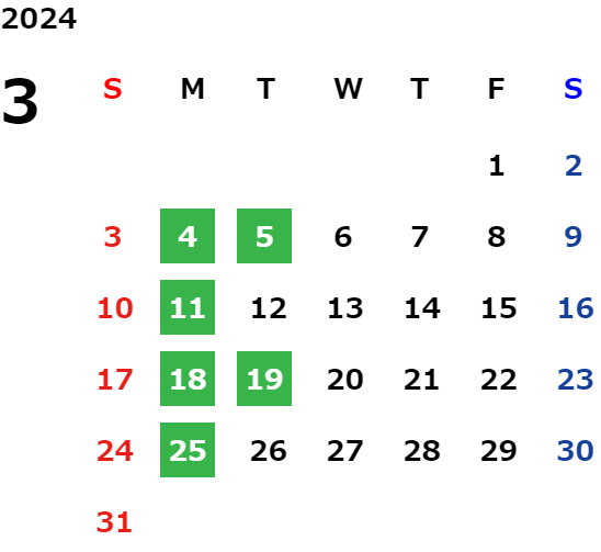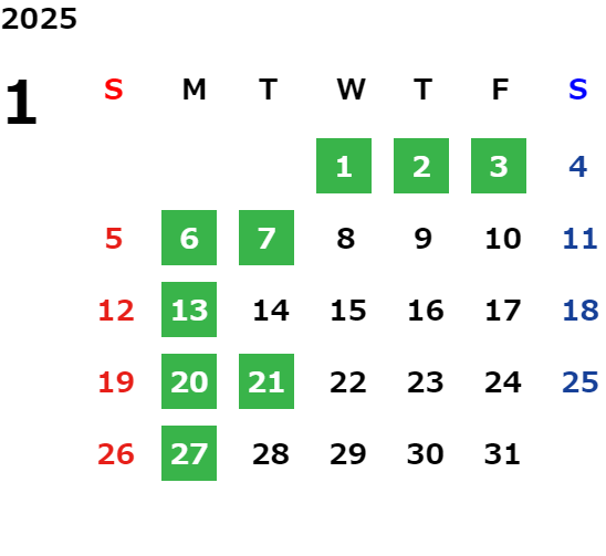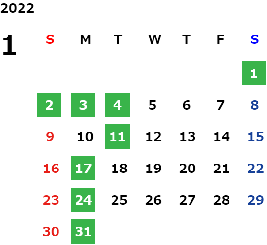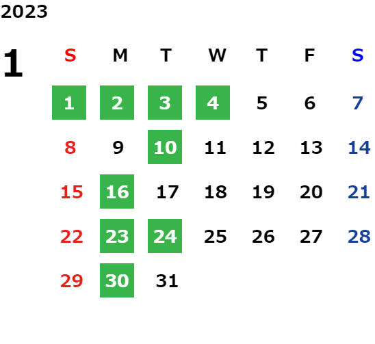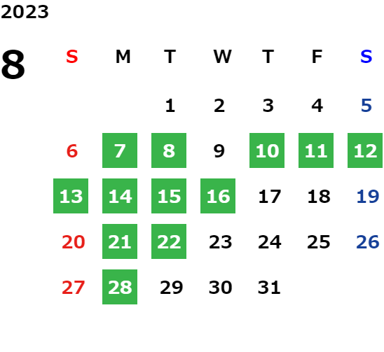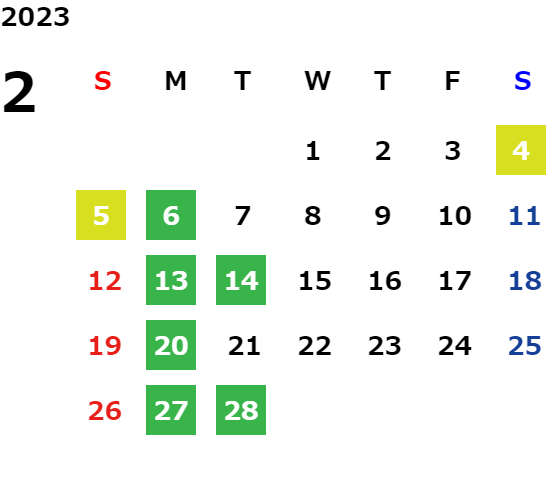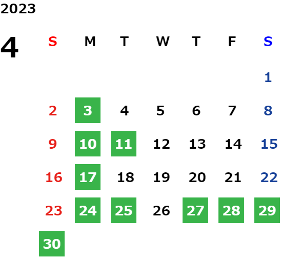 営業日カレンダー